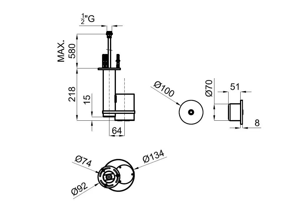 NOKEN EYE Потолочная душевая лейка с хромотерапиией, 100-240V, черный матовый/браш. медь