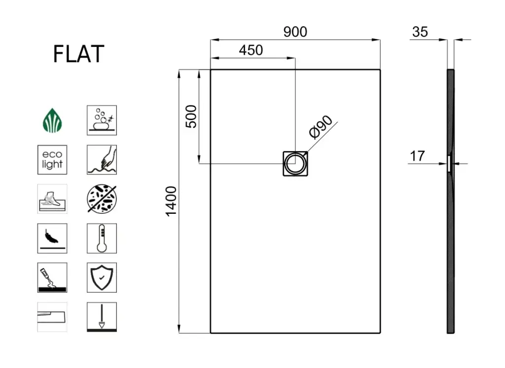 NOKEN FLAT Поддон из материала Light Stone с фактурной поверхностью, 140x90х3,5h см, белый