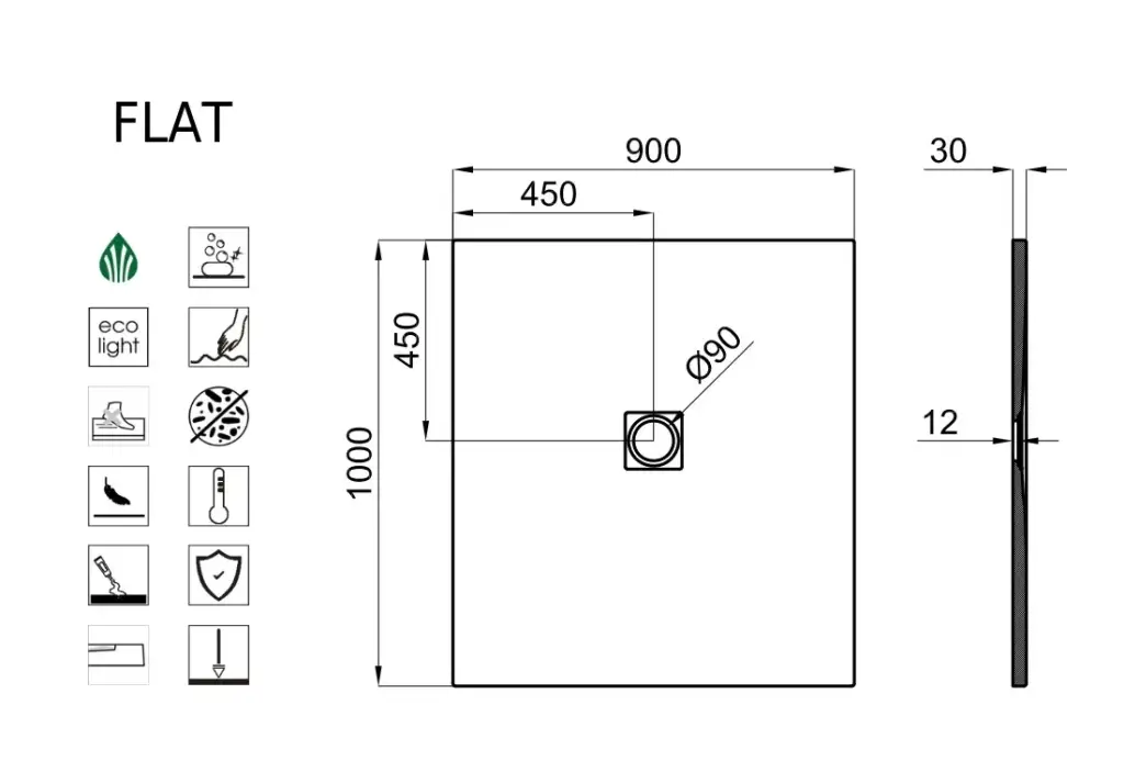 NOKEN FLAT Поддон из материала Light Stone с фактурной поверхностью, 100x90х3h см, белый