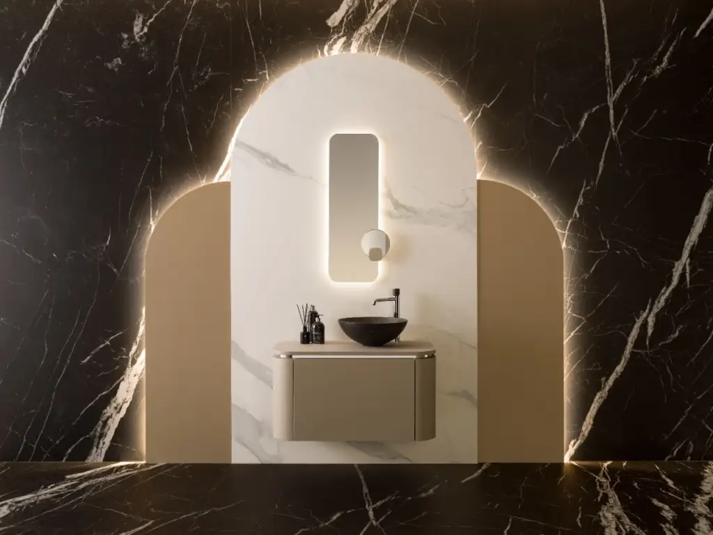 NOKEN FORMA Модуль подвесной для раковины с зеркалом, столешница Project Tech, 90 см, almond