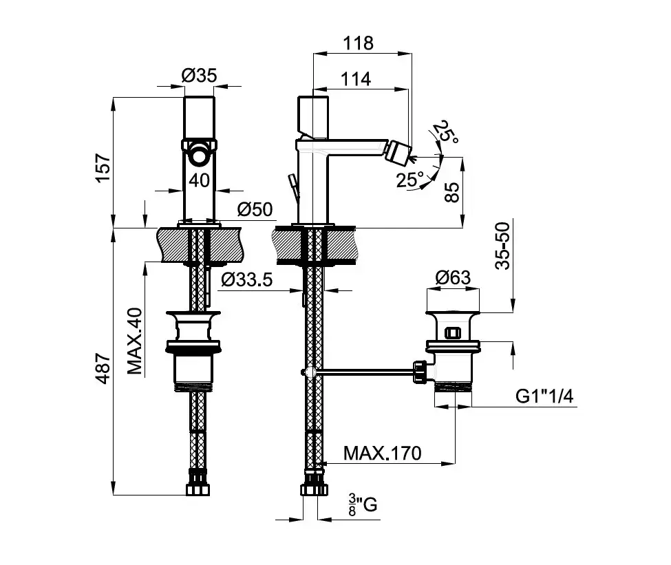 NOKEN FORMA Смеситель для биде, однорычажный, 1 отв., 3/8”, 10,8 л/мин, хром