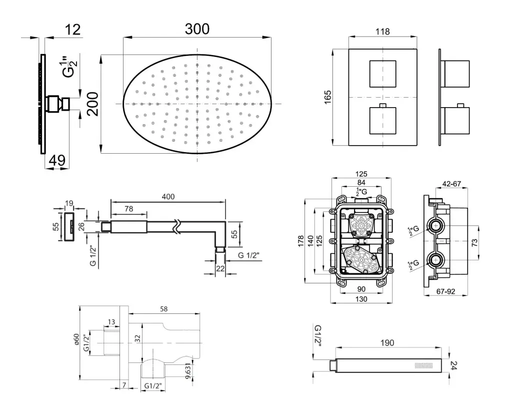 NOKEN KIT ROUND&URBAN Комплект для душа, с верхним душем NEPTUNE Oval 30x20 см, хром