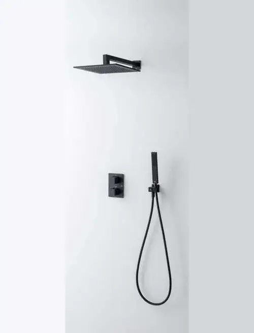 NOKEN KIT SQUARE Комплект для душа с термостом и верхним душем 30x30 см, чёрный матовый