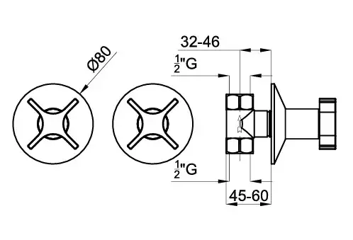 NOKEN LIGNAGE CROSS Комплект запорных вентилей с переключателем, браш. медь