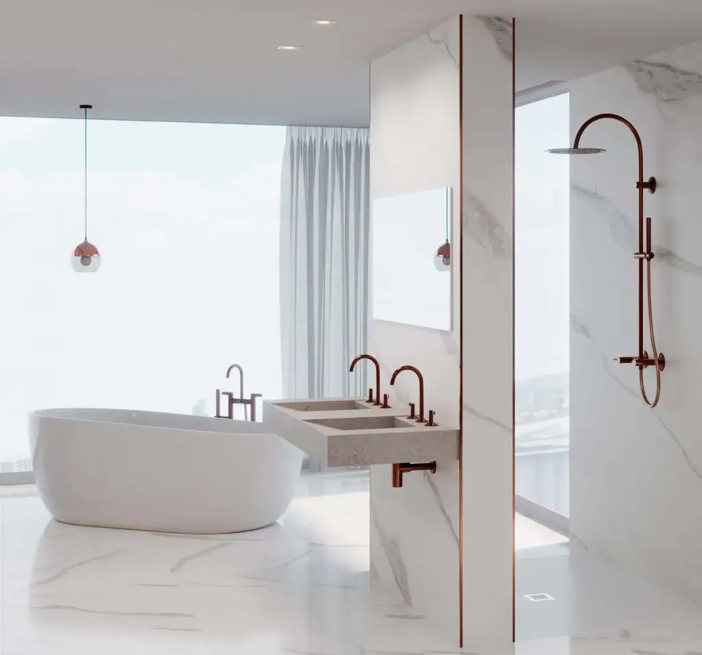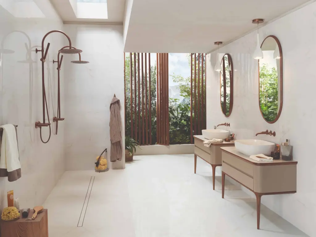 NOKEN LIGNAGE LUXE Душевая стойка двухвентильная L1249 мм, душ Ø300 мм, браш. медь