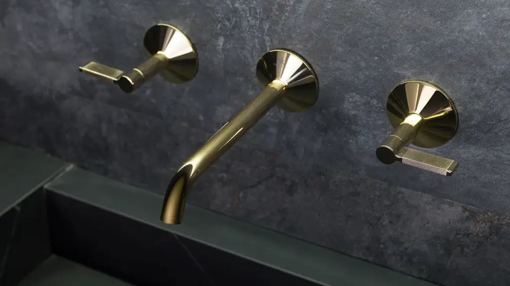 NOKEN LIGNAGE LUXE Смеситель для раковины из стены на 3 отв., без ДК, ребристая ручка, золото