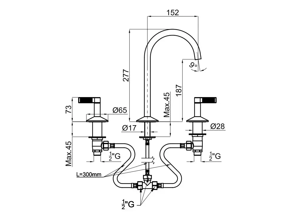 NOKEN LIGNAGE LUXE Смеситель для раковины на 3 отверстия, БЕЗ ДК, 5 л/мин, браш. медь