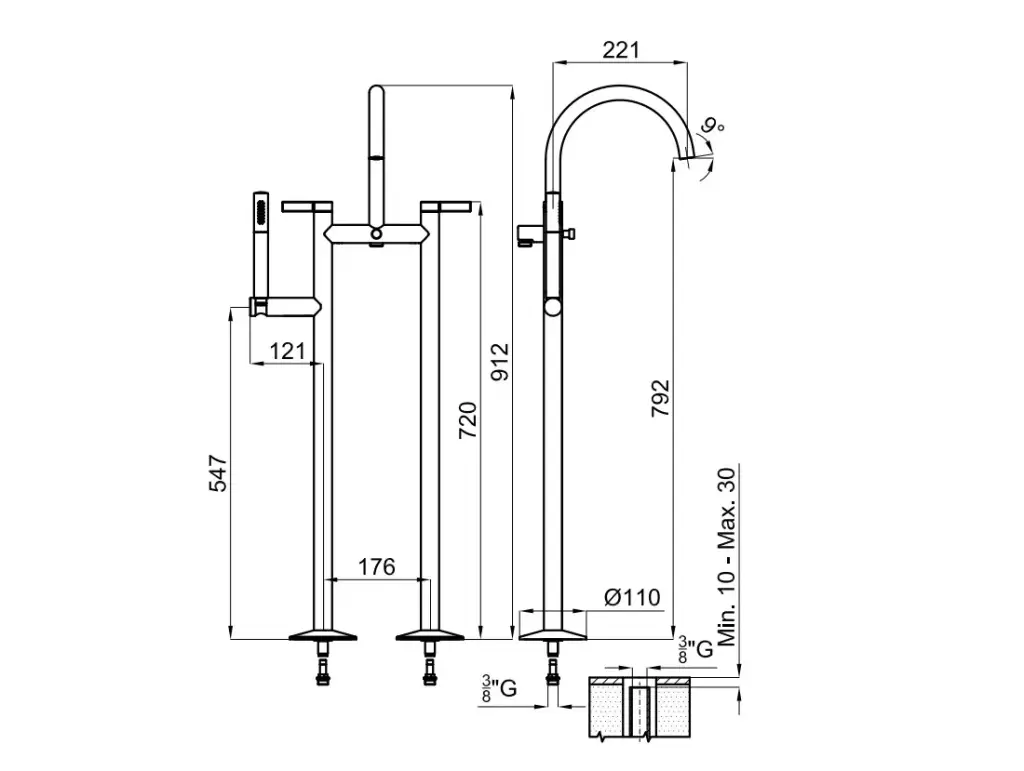 NOKEN LIGNAGE Смеситель для ванны напольный, браш. медь