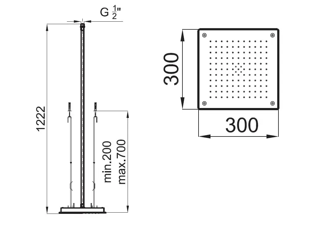 NOKEN LOGIC Верхний душ встраиваемый в потолок Square 30 см, 9 л/мин, хром