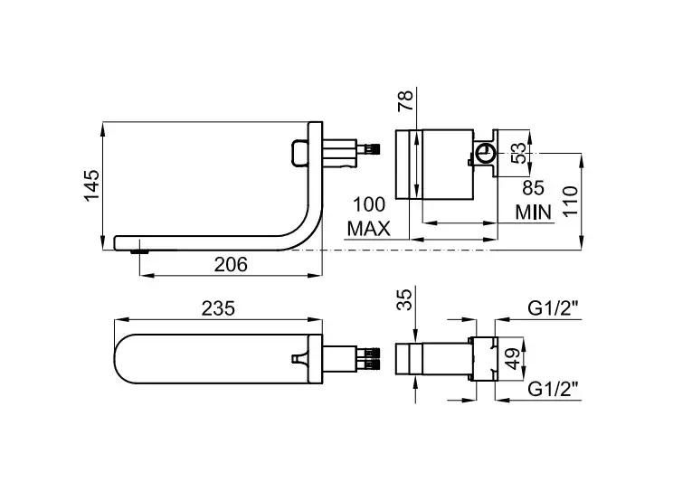 NOKEN LOUNGE FLUID Прогрессивный смеситель для раковины из стены, с аэратором “plus”, браш. титан