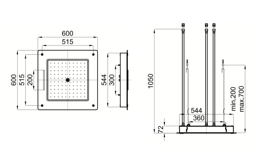 NOKEN LOUNGE Потолочный душ 60х60 см на 3 выхода, polished stainless steel