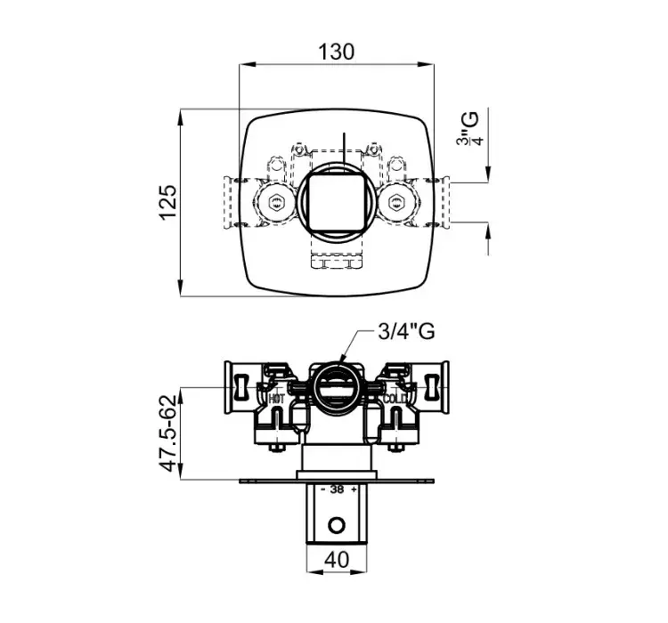NOKEN LOUNGE Смеситель с термостатом, утопленный, 3/4”, 60 л/мин, без запорного вентиля, хром