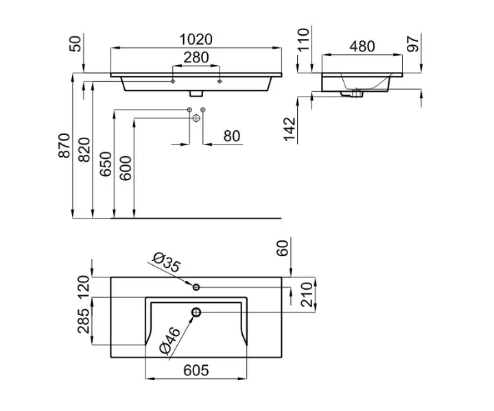 NOKEN MARNE Раковина подвесная с тонким краем 1020x480 мм с переливом, 1 отв. под смеситель, белый