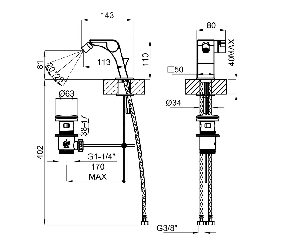 NOKEN OXO Однорычажный смеситель для биде, с ДК, xром