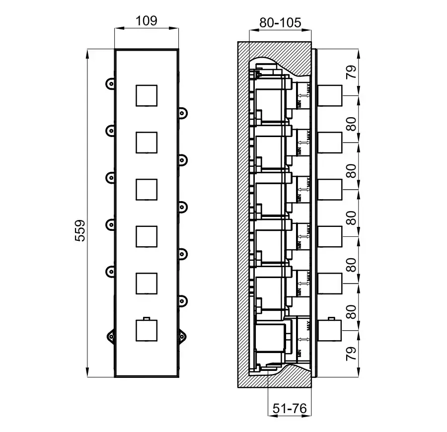 NOKEN OXO Внешняя часть термостатического смесителя на 5 выходов, брашированный титан