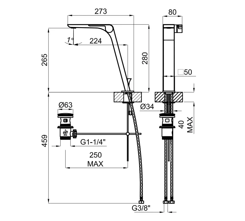 NOKEN OXO Высокий однорычажный смеситель для раковины, с ДК, xром