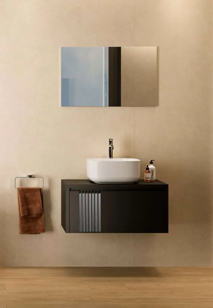 NOKEN PACK ARQUITECT Комплект 80 см: зеркало, тумба, раковина, смеситель, черный матовый/белый/хром