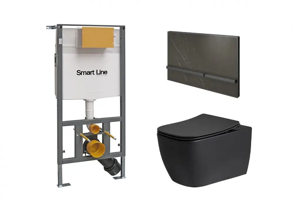 NOKEN PACK LOUNGE NEGRO Комплект: инсталляция, унитаз с сиденьем, клавиша, matt black/marquina stone