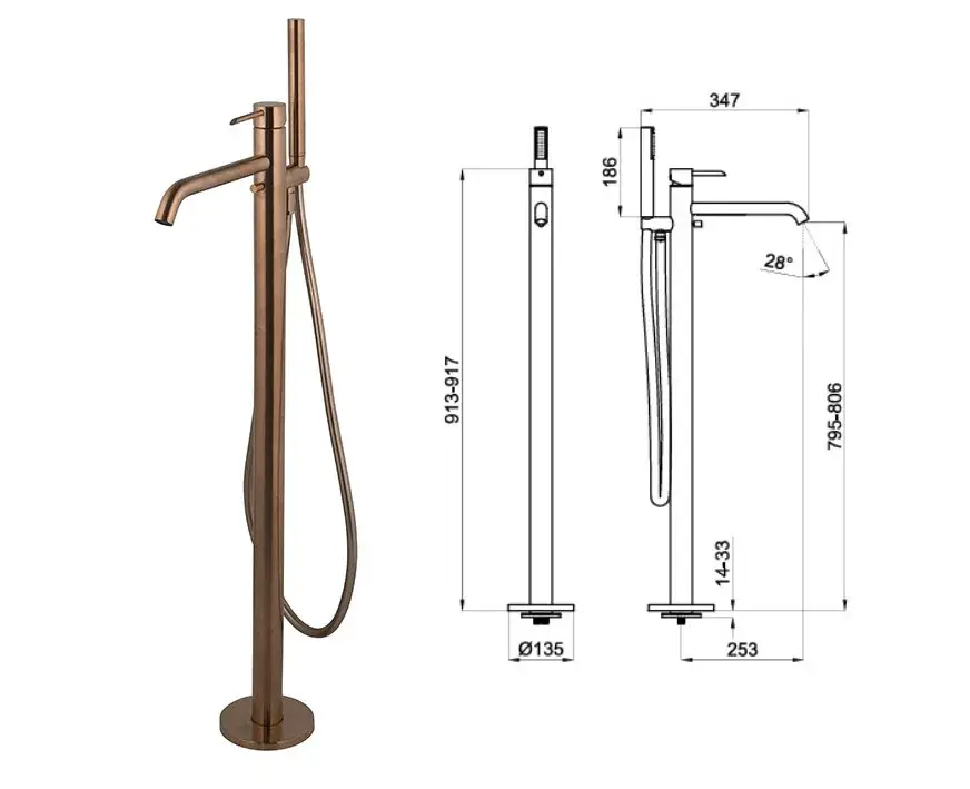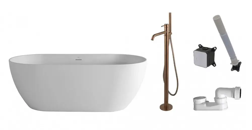 NOKEN PACK LOUNGE Ванна акриловая 170х80х60H см с напольным смесителем, белый матовый/брашир. медь