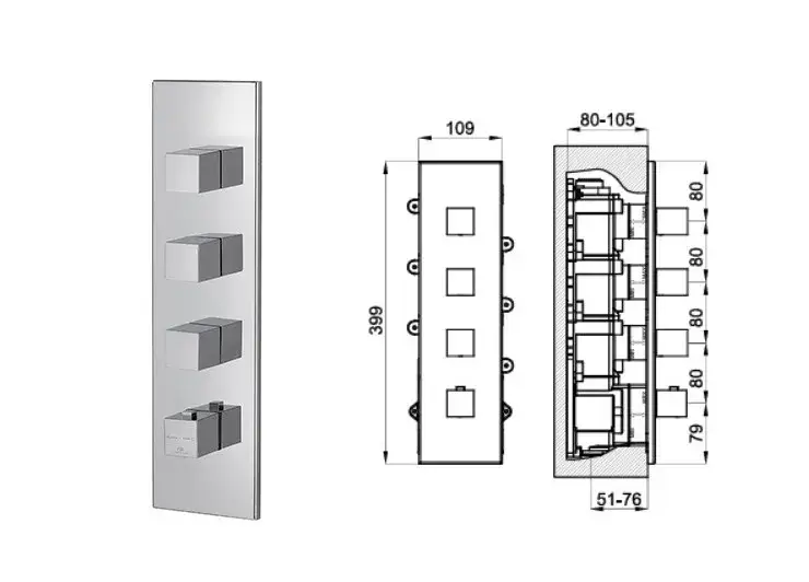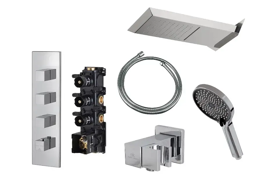NOKEN PACK OXO Душевой комплект с термостатом, верхний душ, зеркальная нержавеющая сталь/хром