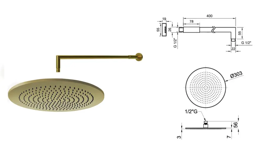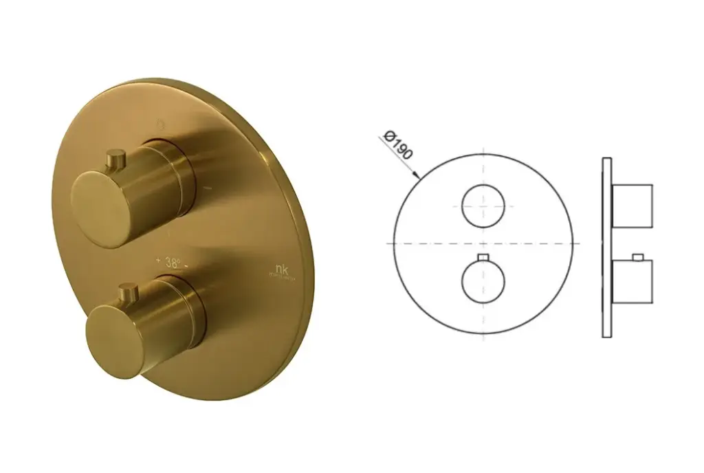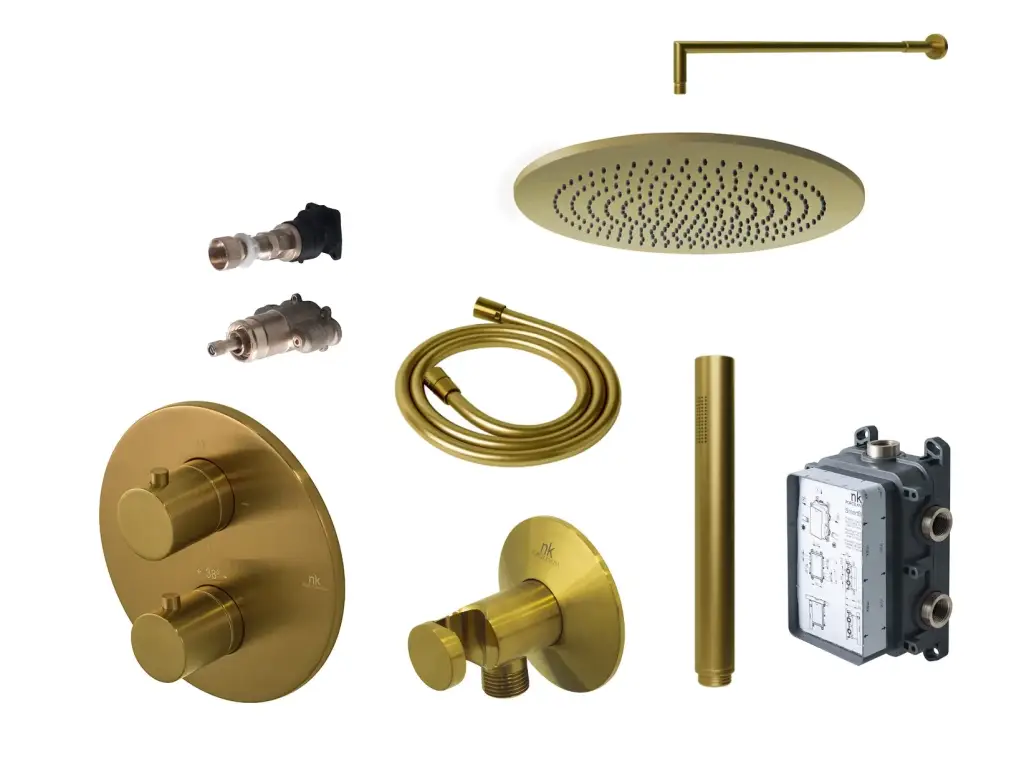 NOKEN PACK ROUND Душевой комплект с термостатом и верхним душем Ø30 см, браш. золото