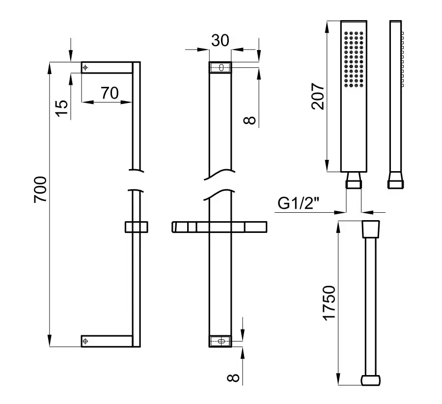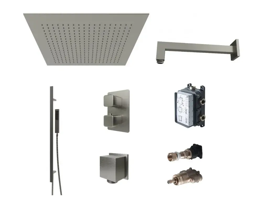 NOKEN PACK SQUARE Душевой комплект с термостатом и верхним душем 30х30 см, браш. титан