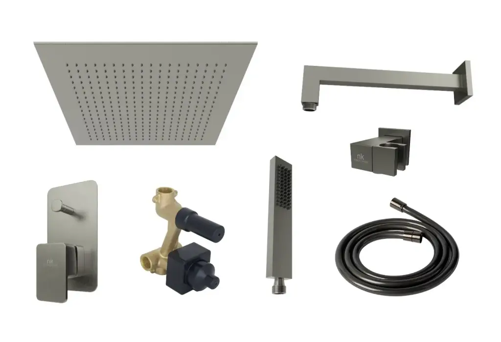 NOKEN PACK SQUARE Комплект для душа, с верхним душем NEPTUNE SLIM 30х30 см, браш. титан