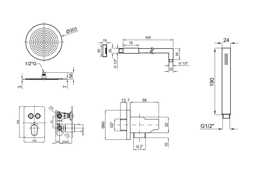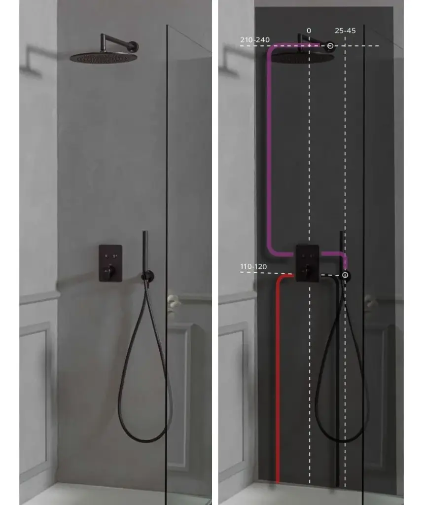 NOKEN PACK TOUCH&FEEL RONDO Душевой комплект с верхним душем Ø30 см, термостатом, черный мат