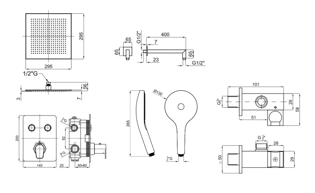 NOKEN PACK TOUCH&FEEL SQUARE Душевой комплект с верхним душем 30х30 см, хром