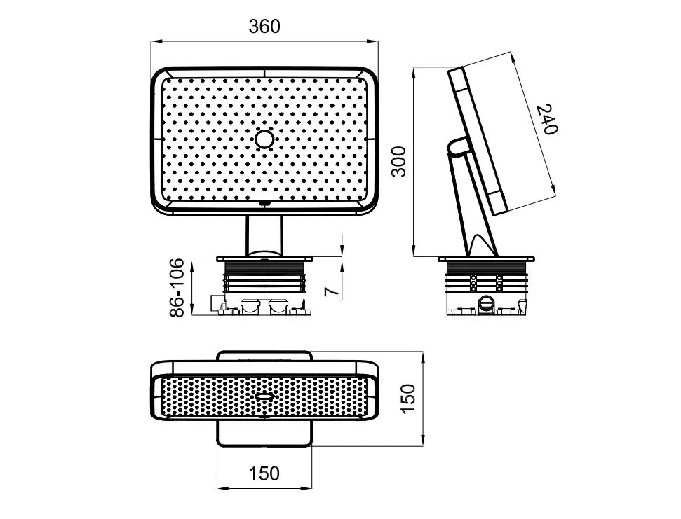 NOKEN PLUMP Верхний душ с держателем 360х240 мм, 19,08 л/мин., чёрный