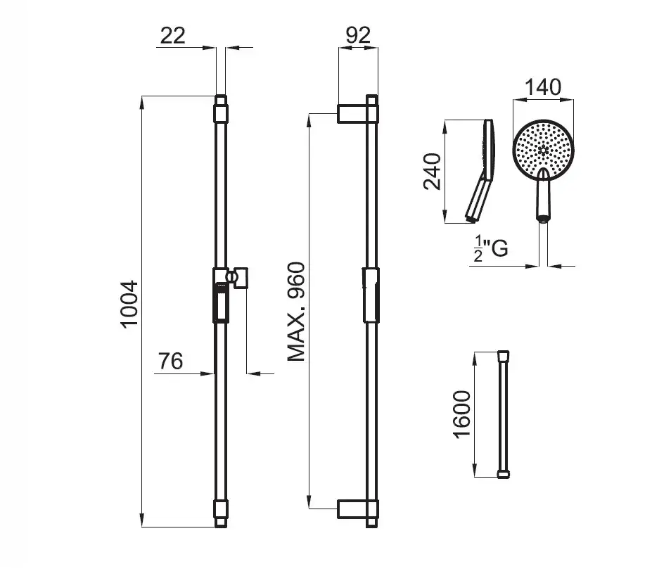 NOKEN PURE LINE Набор для душа без подвода воды, хром