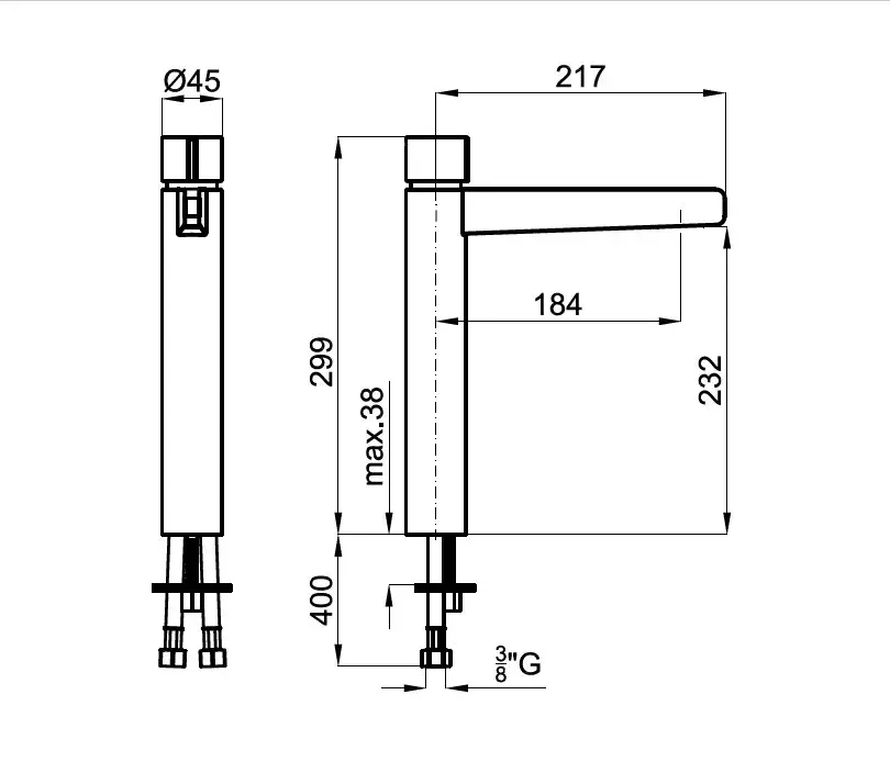 NOKEN PURE LINE Высокий однорычажный смеситель для раковины, без ДК, 5 л/мин, хром