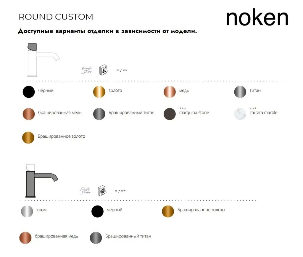 NOKEN ROUND CUSTOM Смеситель для раковины H160 мм, 3/8”, 5 л/мин, без ДК, хром/colors.