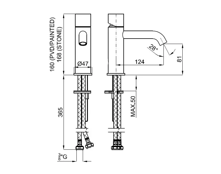 NOKEN ROUND CUSTOM Смеситель для раковины H160 мм, 3/8”, 5 л/мин, без ДК, черный матовый/colors.