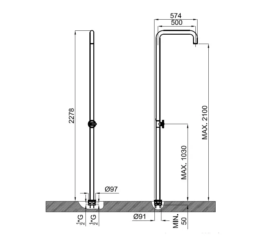 NOKEN ROUND INOX Душевая стойка напольная, 7,31 л/мин, браш. нержавеющая сталь 316