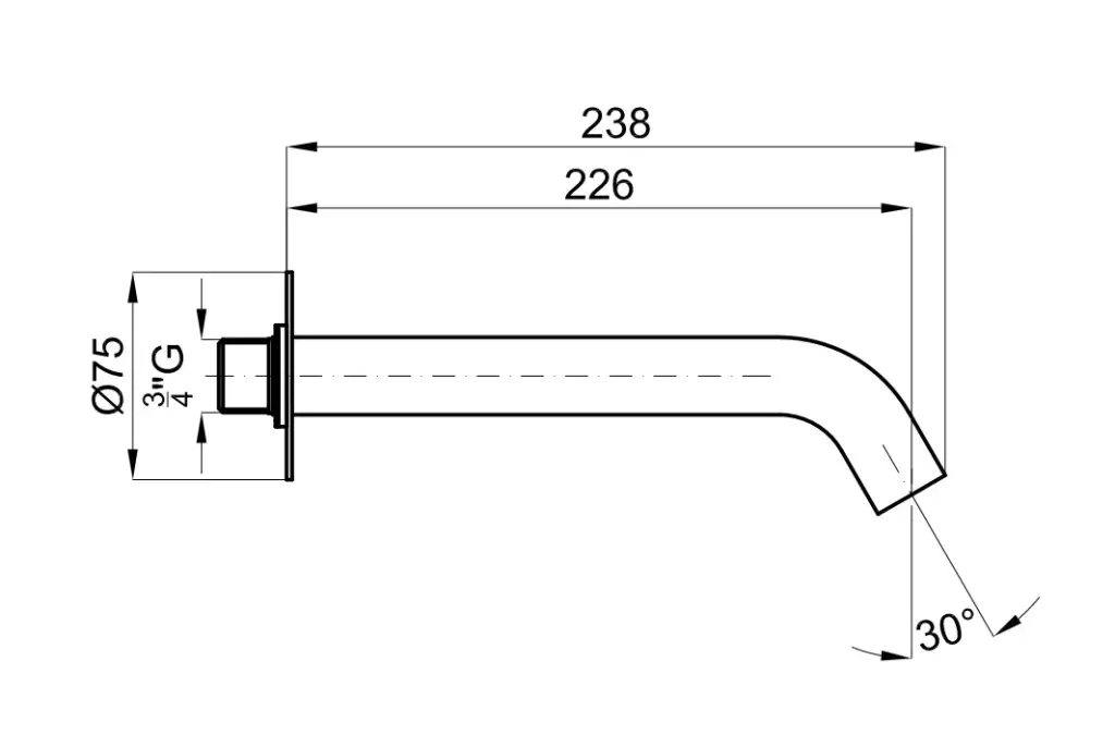 NOKEN ROUND INOX Излив для ванны, 28,2 л/мин, вылет 226 мм, браш. нержавеющая сталь