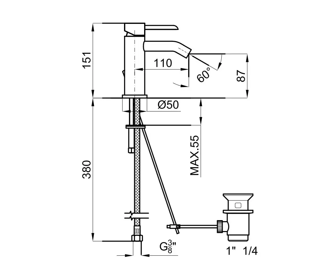NOKEN ROUND INOX Смеситель для биде, 5 л/мин, с ДК, браш. нержавеющая сталь