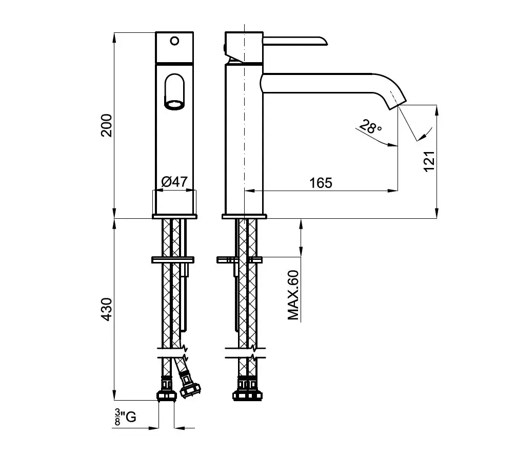 NOKEN ROUND Смеситель для раковины H200 мм, 3/8”, 5 л/мин, без ДК, хром