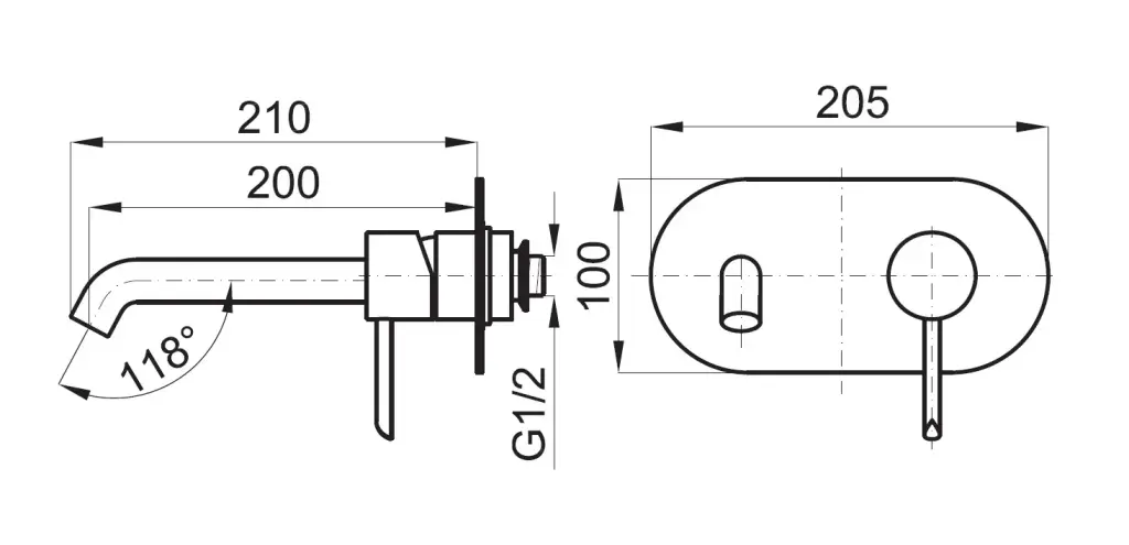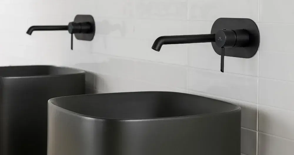 NOKEN ROUND Смеситель для раковины из стены, вынос 200 мм, 5 л/мин, черный