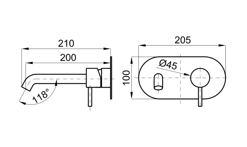 NOKEN ROUND Смеситель для раковины из стены, вынос 200 мм, 5 л/мин, черный