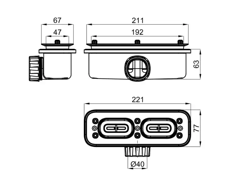 NOKEN Сифон H60 для душевого поддона UNSEEN, выходом сливной трубы Ø40, 0,5 л/с