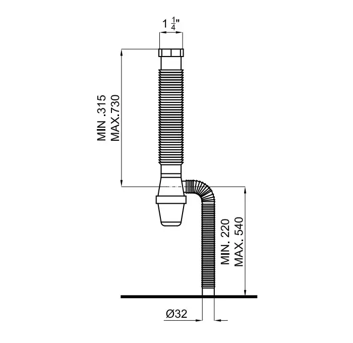 NOKEN Сифон с гибгим подключением для напольной раковины, выход в пол, белый