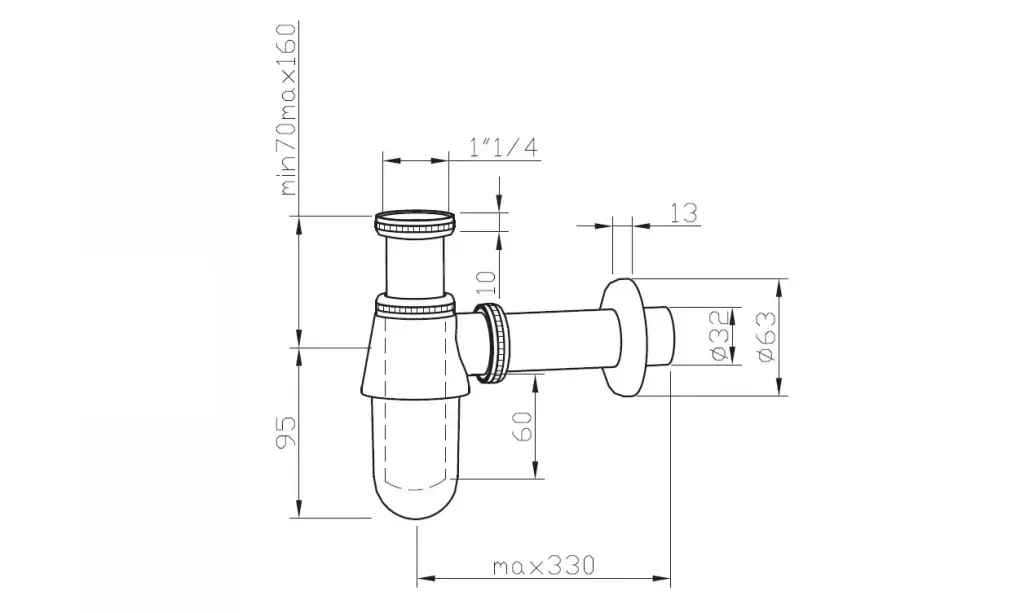 NOKEN Сифон в виде бутылки для раковины, классический, хром