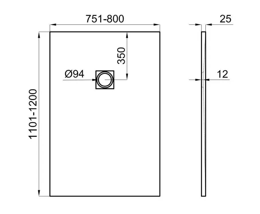 NOKEN SLATE Поддон из минерального литья, A=751-800xB=1001-1100хh30 мм. Спецзаказ!
