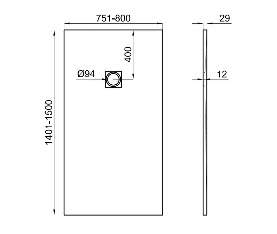 NOKEN SLATE Поддон из минерального литья, A=751-800xB=1401-1500хh30 мм. Спецзаказ!