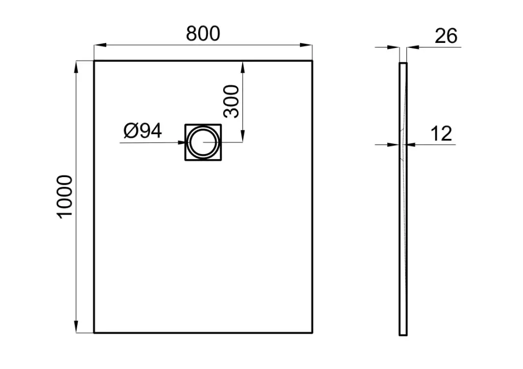 NOKEN SLATE Поддон из минерального литья, A=751-800xB=1001-1100хh30 мм. Спецзаказ!