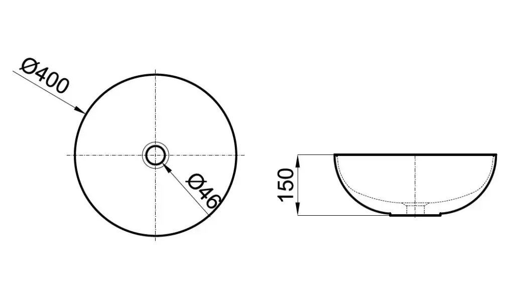 NOKEN SLENDER Раковина Ø40 см для установки на столешницу без перелива, без ДК, белый матовый