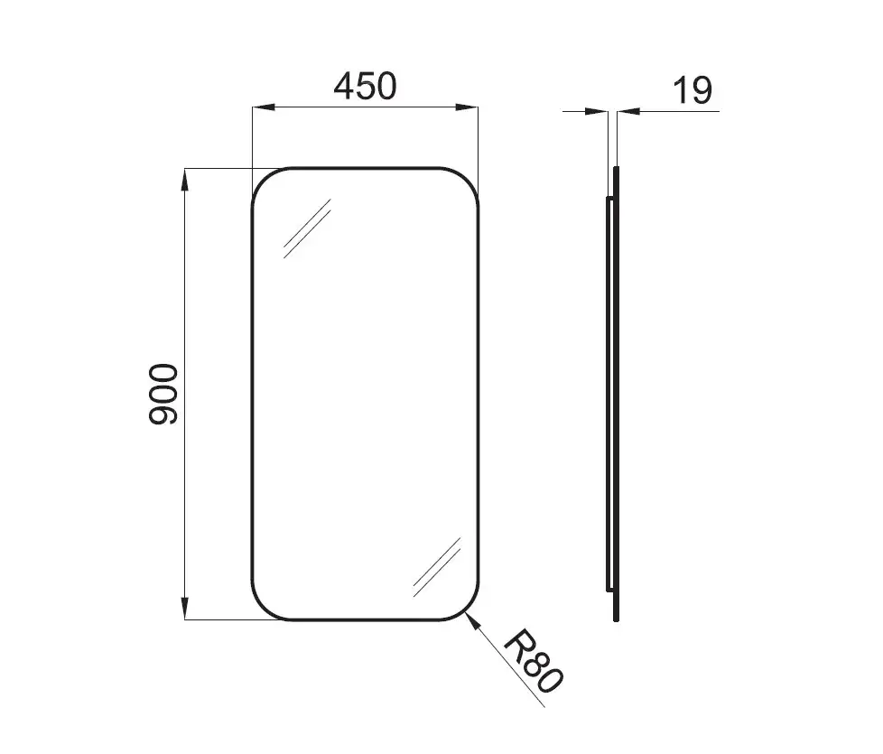 NOKEN SMART LINE Зеркало вертикальное с закругленными, шлифованными краями, без рамы, 45х90 см