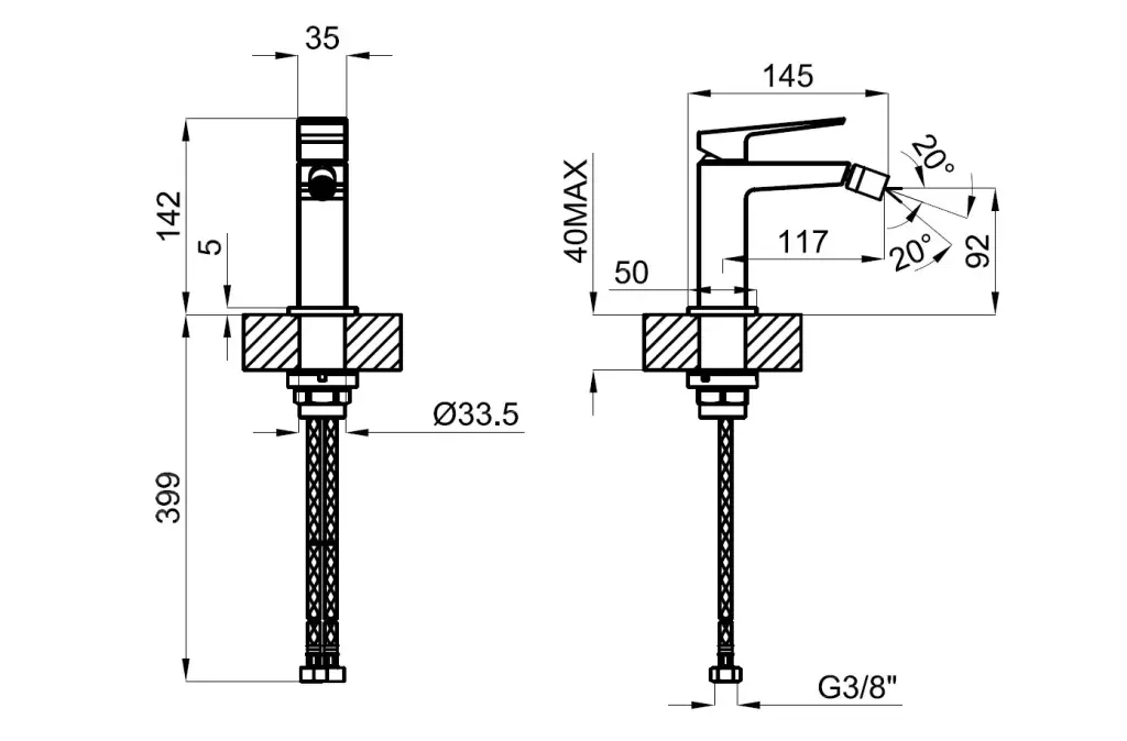 NOKEN SQUARE Однорычажный смеситель для биде, БЕЗ ДК, медь