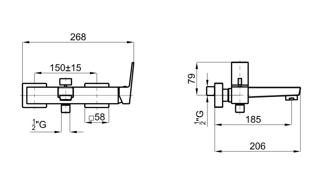 NOKEN SQUARE Смеситель для ванны настенный, для душа 18 л/мин, для ванны 15,98 л/мин, хром